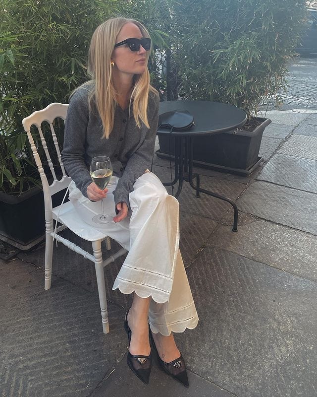 Finally, I tried (keyword: tried!!) to style the pantsFirst, I tried this look inspired by the breezy pajama-esque look up top. It’s not bad. I like the airy top paired with the airy bottoms, and I think the more masculine leather bag creates an okay balance. But I didn’t have the right type of bra to wear with this… … so I threw on a cotton sweater over my shoulders. At this point, though, the outfit was leaning a little too Eileen Fisher (lol), so I threw on a bright scarf to brighten things up a bit. I liked the look, but it all felt too overdone for my activity that day: mostly WFH and out of a cafe. Keep reading with a 7-day free trialSubscribe to Downtime to keep reading this post and get 7 days of free access to the full post archives. A subscription gets you: