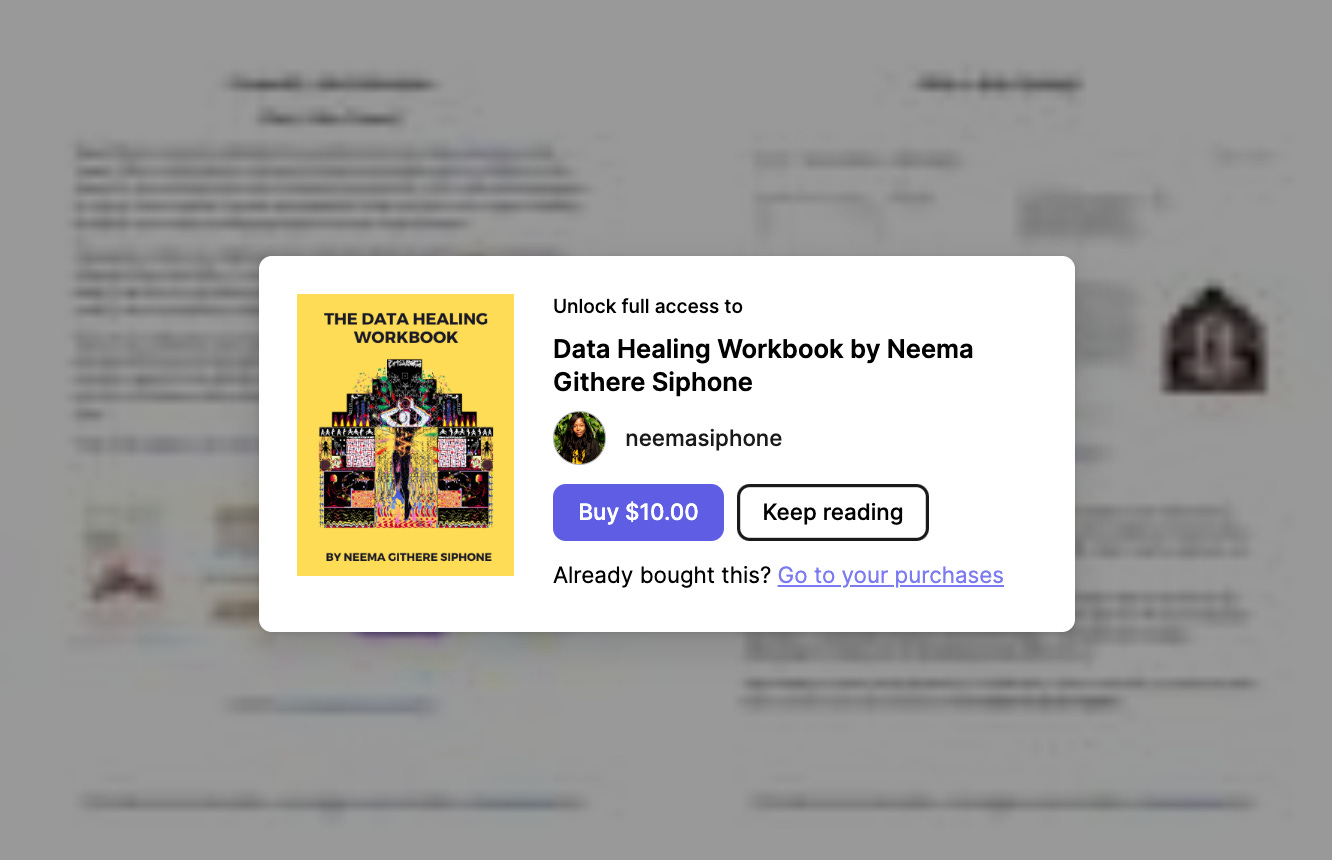 74-pg Data Healing Workbook: Now Available to Download & Purchase!Combining theory, near-future speculative fiction, code poetry & reflection exercises; this workbook is designed to help you process, interrogate and rewire your relationship to social media.Thank you to everyone who gave feedback on the beta-beta edition of the Data Healing Workbook I shared last week. I’ve added a little under 50 pages to the journal in response to the feedback some of you shared on what you wanted to see more of and migrated the book from Google Drive to Issuu: the full 74-page workbook is now available to purchase & download! The workbook is a combination of theory, near-future speculative fiction, code poetry, screenshot essays & reflection exercises; each aimed at helping you process and rewire your relationship to Instagram. I will continue to update the workbook on a weekly basis in response to the parts that people are most interested in reading more of. Right now I’m working on adding a section dedicated to navigating shadowbans - if anyone has specific guided-exercise requests, feel free to reply to this email 💌 The workbook is $10 for the time being, but paid subscribers ($7/month) can access the full version below and each consecutive update as they come. ... Subscribe to Neema’s Substack to unlock the rest.Become a paying subscriber of Neema’s Substack to get access to this post and other subscriber-only content. A subscription gets you: