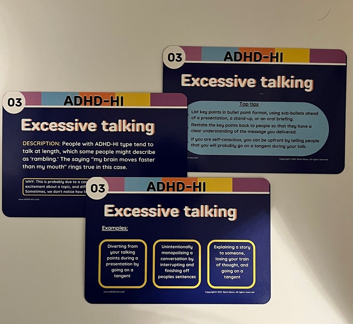 A description, tips and example of how this can impact you as an adult: ADHD Hyperactive-Impulsive Type can show up as: