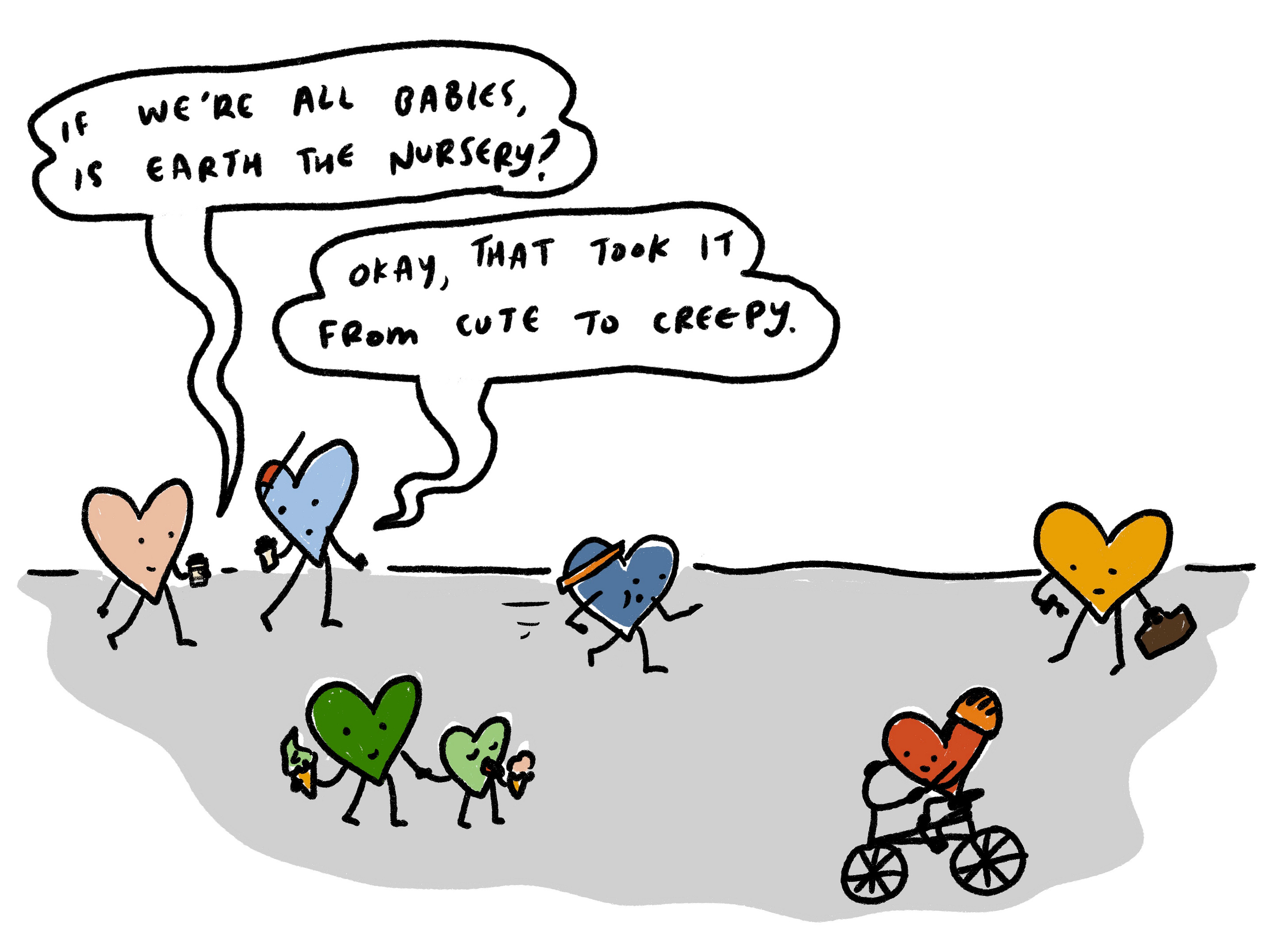 Welcome to another illustrated edition of Haley Wrote This! You can support this newsletter by clicking the ♡ button at the bottom and sharing this publication with your friends. Paid subscriptions keep it alive entirely. Thank you! Twice a week, I attend a yoga class at my gym. I adore this class for its energizing flow, but my favorite part happens toward the end, when we transition to a happy baby pose. As everyone in the room lies flat on their backs and reaches for their feet, the instructor says something that delights me each time: I love this sentiment. I mean, come on! Imagining a room full of yoga babies is endearing as hell, but it also feels like the perfect message to carry through my day. To be mindful of my neighbor babies is to hold compassion for each person I encounter. Even before discovering this yoga class, one of my favorite ways to both practice empathy and relieve my own social anxiety was to remind myself that every person I came across was once an infant. Maybe this approach is a distant cousin to the “imagine everyone in their underwear” trick, but there’s something disarming about remembering that beneath our appearances and job titles and lived experiences, we all were once tiny and dependent. All of this is not to say we remain tiny and dependent now. Adults are responsible for themselves and their actions. But I’ve found this concept helps me be a little softer toward others. And when I’m feeling down or being hard on myself, I try to remember I was once just a baby, too. Now for some updates: