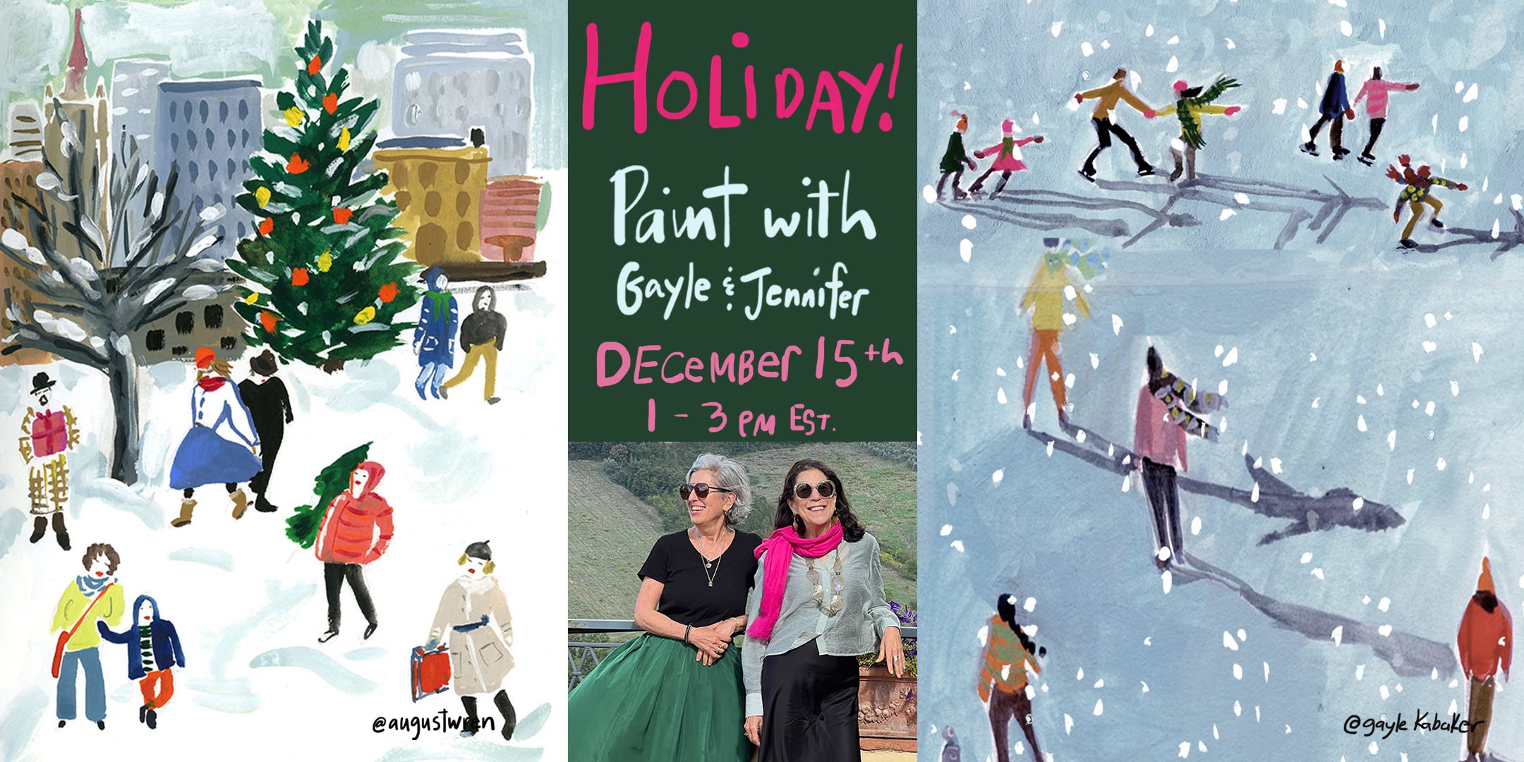 Gayle Kabaker is a painter, writer, teacher and visual storyteller Hello! You know how it is when you wait a long time to see something and then you see it and…WOW! Seeing these videos has taken me right back to the incredible nine days I spent in Australia in September. I hope you can feel the magic. I had to create two paintings from my experiences in Tasmania and Kangaroo Island. I painted the Sydney scene for myself in my hotel room. Knowing how jet lagged I was I can’t believe I did this. Hey - I was INSPIRED! I’m very happy Tourism Australia ended up choosing that painting as well! I took tons of photos, did lots of sketching, and painted these after I got home. I went right to Italy after Australia to teach with Jennifer and had to put my Australia inspiration on hold for three weeks. Not hard as Italy was mildly inspiring too. HA! Now that’s an understatement. Scroll down to see the new holiday Zoom workshop Jennifer Orkin Lewis and I are offering. Have a Happy Thanksgiving everyone! xox Gayle Jennifer and I excited to announce our third Holiday class! As always, it’s a donation-only class and we will donate a % of our profits to our local food banks. This class is about creating some fun, non traditional holiday-themed art. We will each paint something festive and wintery, possibly a still life, or scene of festive tiny people, or pattern of holiday themed things, or maybe a few of each! We work on lots of ideas for you and then decide right before the class which would feel the most fun to paint with you. This will be extra accessible, with some really simple ideas for all of you new painters. Jennifer will do a short technique demo showing how to use acryla gouache. While you are welcome to use any materials you want, we will be painting with acryla gouache. Bring the kids! You're currently a free subscriber to Gayle Kabaker's substack. For the full experience, upgrade your subscription. |