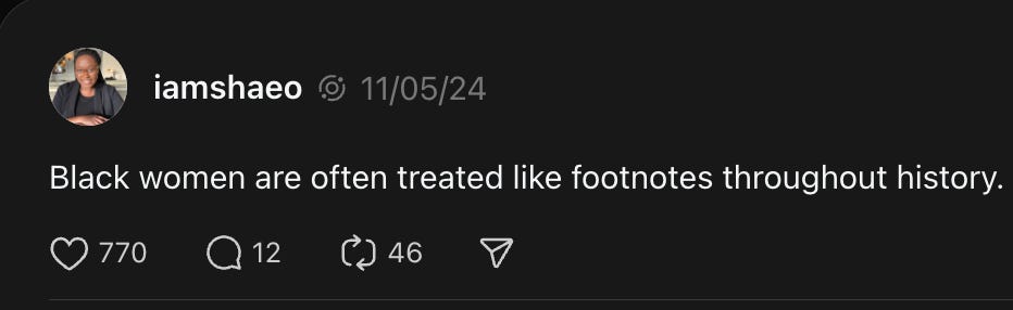 Something powerful is coming…Introducing No Longer Footnotes — A Reflection & Resilience Workbook Inspired by Black Women in HistoryThis is a defining moment. In the days after the 2024 election, I went quiet. I needed time to reflect, to breathe, and to ask myself what future I was ready to build. I could’ve stayed there — in silence, in retreat. As a historian and PhD candidate at Harvard, the stories of Black women have always been the engine of my work. While at the University of Chicago, I raised $50,000 to co-commission a monument to Dr. Georgiana Rose Simpson, the first Black woman to earn a PhD in the United States. Black women’s stories have always carried me through the highs and lows of life. Their lives, their choices, their courage — they’ve shaped how I think, how I study, and how I move through the world. As an avid nonfiction reader, I’ve read so many memoirs, biographies, and self-help books from some of the greatest minds. Yet, if you look at the publishing industry, it can seem like Black women don’t have lessons, insights, and advice to share as well. That’s not true. I’ve spent months collecting the best insights and lessons from the Black women I covered in my series. And now, I want to share their wisdom with you. ✨ Today I’m releasing pre-orders for No Longer Footnotes: A Reflection & Resilience Workbook. You’ll find: