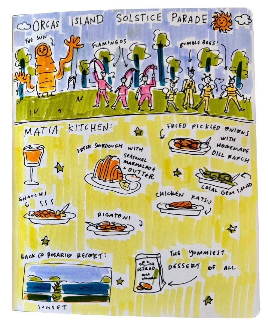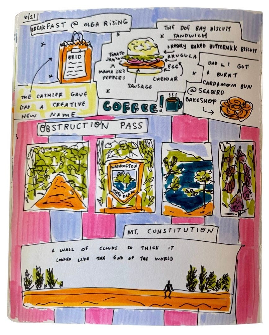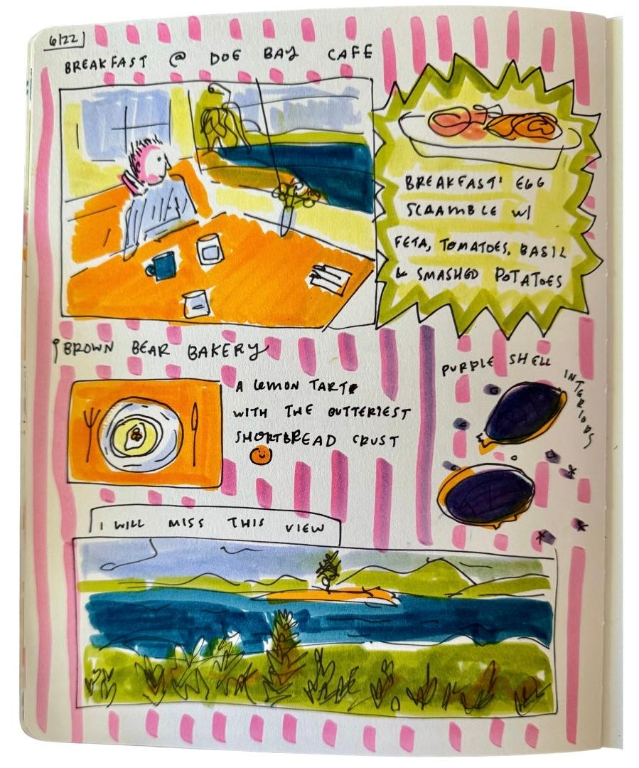 Haley Wrote This is a reader-supported newsletter. If it has brightened your inbox, please consider supporting it by becoming a paid subscriber (you’ll get to read the entirety of this email and so much more!) I just got back from a trip to Orcas Island. The rocky coast is heaven. I kept finding myself staring out at the horizon, where the neighboring islands jut out in tree-lined curves. Though it takes a drive and a ferry ride to get there from Seattle, the trip is wholly worth it (and I’m saying that after riding in the middle seat of our tiny car, sandwiched between my sister and my mom!). We only stayed two nights, so we packed Saturday with a lot of activities: On our last day, we got up early to eat breakfast with a view. I’m trying to hold onto the serenity of this place, the earthy hues and salty air, the gentle breeze and winding roads, all bordered by pebbly beaches and grassy bluffs. I miss it already. Scroll down for five June favorites, a self portrait, and, some fun phone wallpapers for July. Previewing the wallpapers here, while the link to download them is behind the paywall. Subscribe to Haley Wrote This to unlock the rest.Become a paying subscriber of Haley Wrote This to get access to this post and other subscriber-only content. A subscription gets you: