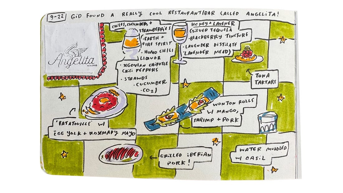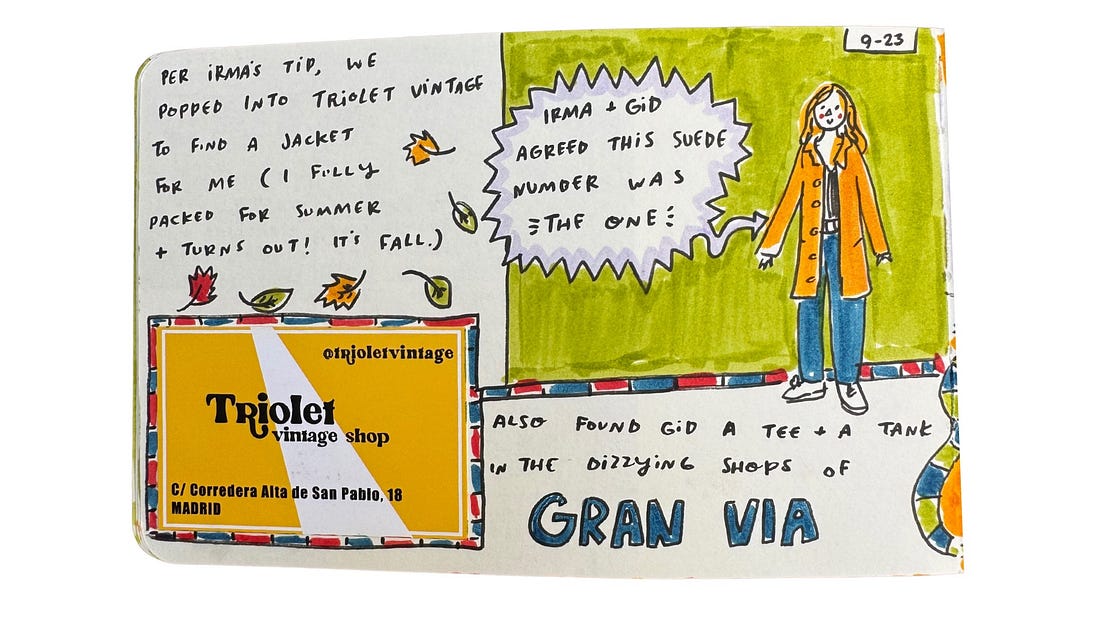 Today I’m sharing my favorite pages from my time in Madrid, plus a list of my recommendations from this leg of the trip at the bottom of the email. Let’s go: