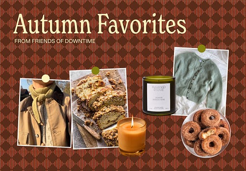 This is the Friday recs post at Downtime, a weekly roundup of culture, books, delights, and things on my radar for my paying readers. Upgrade here, if you’d like!I know it’s a cliché, but fall really does feel like a busy season for moms, especially the ones who thought they were signing up for “low-lift” crafts and family photos that somehow became full-scale productions (hi, me). Cut to me last night, hunched over the playroom floor with a tiny glue gun, assembling a felt flower hairpiece that has maybe a 20 percent chance of actually making it onto my toddler’s head for her costume parade. Earlier that day, we had our family photos taken for holiday cards, an activity that involved outfit coordination, hair brushing, and the logistics equivalent of a small event. None of this is a complaint, to be clear. I could easily opt out of these traditions, but the truth is, I love them. I live for this time of year, and all the little rituals and creativity that come with it. Busy and happy and full, that’s my current status update. How are you holding up? xo Alisha Catch up on the latest on Downtime: See my updated baby registry recommendations (with a VERY active comments thread!), my list of bookish and design-y spots in NYC, readers’ and friends’ 50+ autumnal favorites. (Also, thank you for all your nice notes on our baby news. I’m always touched by how kind this group is.) Book club news: We’re wrapping up our Isola read this month, and I’ll share a comments thread for that soon so we can discuss. For our November and December pick, we have a fun announcement coming, and will need your input. Stay tuned! Reader chat spotlight: A few questions from the community that could use your input…