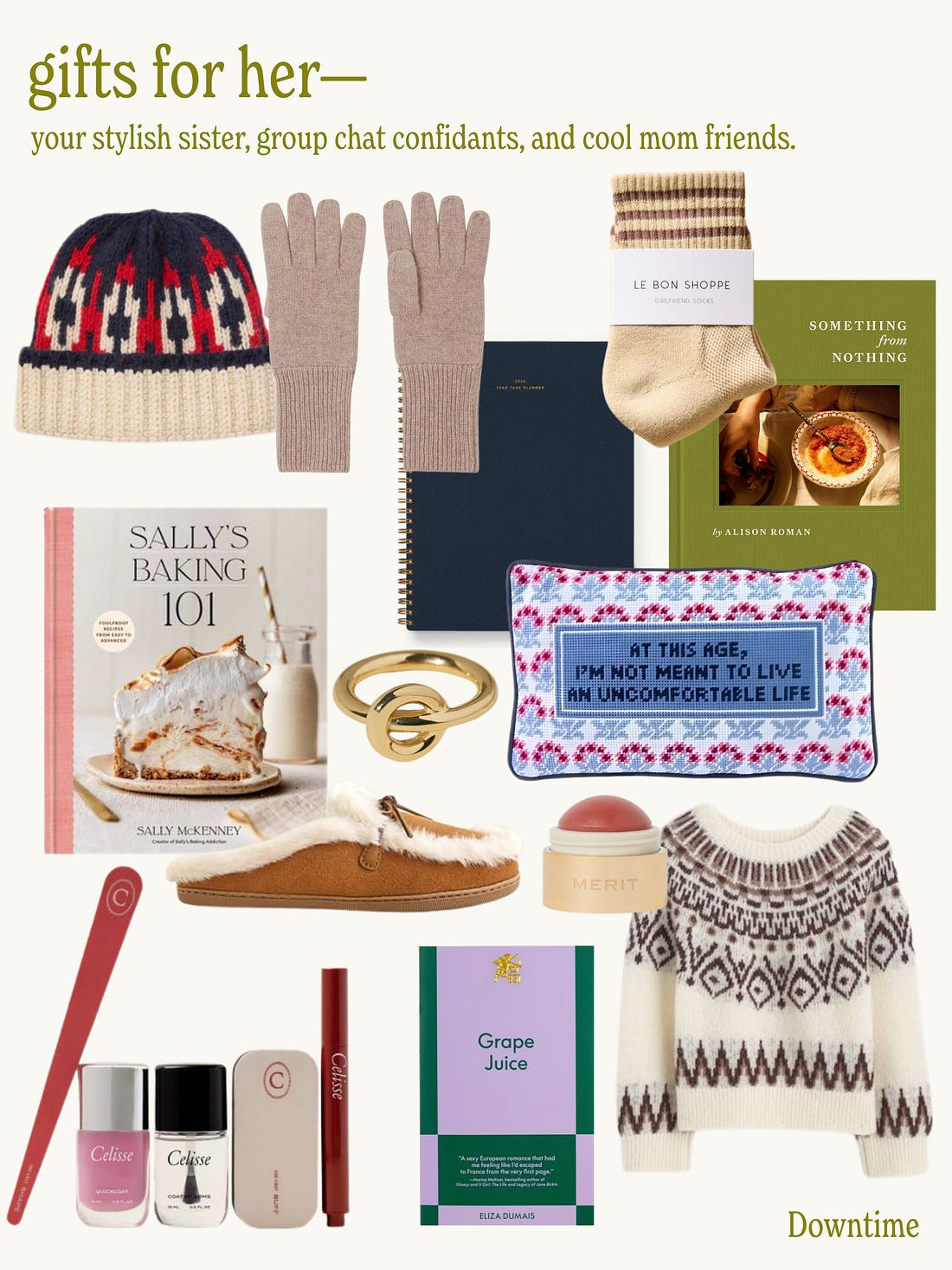 K, LET’S GET INTO IT. xo, Alisha But first, a quick bedding rec… According to our reader chat, everyone seems to be in a bedding-refresh mood, and my top rec for you is Brooklinen. Their Black Friday Sale is on now for 25% off sitewide, and up to 40% off bundles. This is their biggest sale of the year, so don’t miss out! Below are my picks… In our home, we’re big fans of the cozy ribbed quilt for topping our bed with, this waffle robe and matching towels that would make a great gift, and the down alternative pillows and fluffy comforter. This striped super-plush robe looks super giftable, too. *Sponsored mention Gifts are so personal, but I found a few special things that would be a foolproof pick for any woman in your life who wants to be stylish, practical, and FUN.