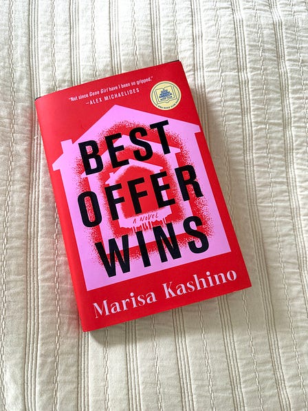 Recs #118: The darkly comic househunting thriller you didn't know you neededA review of "Best Offer Wins" by Marisa Kashino. Plus, loads of reads, links, and recs from the weekThis is the weekly recs newsletter at Downtime, a roundup of books, culture, media, and other delights. These posts are available exclusively for paid subscribers. Consider upgrading to join us: I’m offering a 20% discount on annual subscriptions for the next 72 hours, so now’s the perfect time. Happy weekend! I realize it’s almost March, but do we have time to squeeze in a mini Feb/March book club before I head out on maternity leave?¹ I’ll set up a discussion post thread for us to chat about the book at the beginning of March.