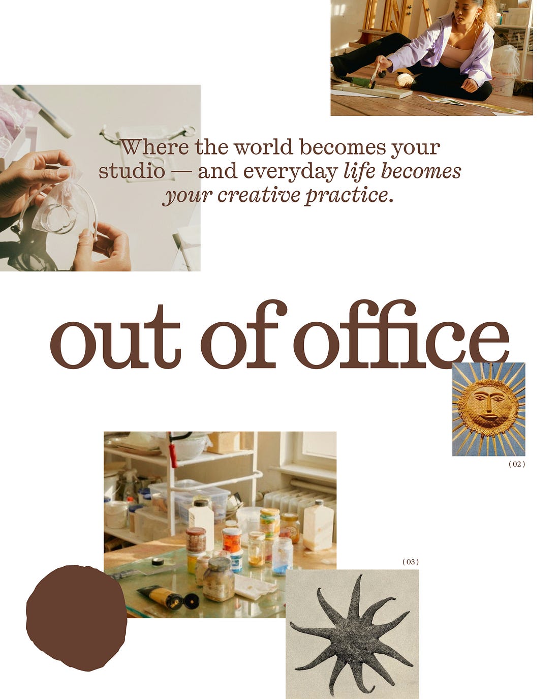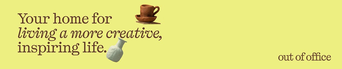 Out of Office is a home for inspired living. A platform and community of curation offering tools, programming and artist-led experiences to bring more creativity into your everyday life. Unlock weekly prompts and community accountability for the next two months by upgrading to a paid subscription. A new era to inspired livingOut of Office evolves into a home for inspired living: explore the world, learn from artists, follow your rhythm 🌀I’m writing with an update on the evolution of Out of Office after a year of motherhood and moving to a new creative home. Especially over the past months, I’ve been reflecting on how I want to spend my days, being a new mom, about what has shaped my own childhood, and what it is that helped me on my journey to build a creative, non-linear path and life. Out of Office has been the platform accompanying me through all my past years of exploring our working life and culture, and is my creative outlet to build a new paradigm of how we work and live, while going through this journey myself, experimenting, and, I guess, being the living proof for how work/life can be built differently. We have historically focused on reimagining how we live and work — through publishing (newsletters + booklet) and programming such as workshops, a residency, and community cohorts. Now, I want to take it one step further and build a home for inspired living. Whether or not you consider yourself an artist or a creative, many of us feel stuck and in (or just before) a moment of pivot. The old story of “success” has expired. And we’re ready for a new one. Many have been following the blueprint, but just find themselves burned out from it, realizing that “success” isn’t trading the best hours of our lives for a salary, but maybe it’s time filled with meaning, following our curiosity, experimenting, and exploring. Over the past 10 years, I’ve explored and studied work/life and culture, living in different countries, cities, places and paces. Have learned from people living life in an intentional way. And have followed my zest for living life to the fullest. With Out of Office, I want to help others do the same. It is the portal I wish more people had access to. Out of Office is evolving into a creative platform for people who want to feel more inspired and connected, offering tools, artist-led experiences and programming that help you see your world — and yourself — with fresh eyes.