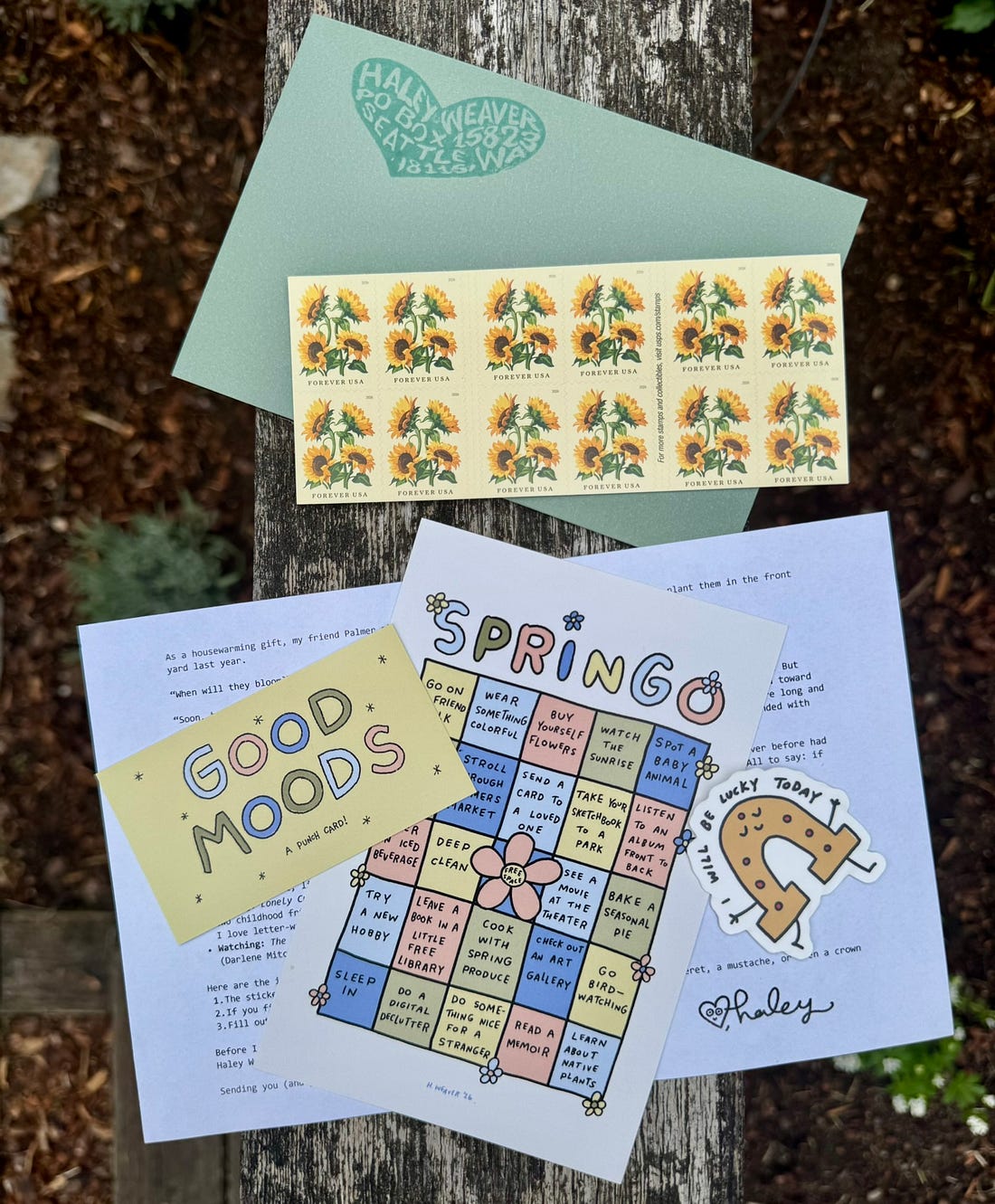 Haley Drew This is a reader-supported newsletter. If it has brightened your inbox, please consider supporting it by becoming a paid subscriber (you’ll get to read the entirety of this email and so much more!) Hi pen pals, This quarter’s snail mail features a spring-y color palette and my new return address stamp: Here’s how mail club works: I send out a link to a form at the start of each quarter. Fill it out, and I’ll know you’ve opted in for mail club! If you filled out your information last quarter, you will need to resubmit it for this quarter. Today, the link to submit your information will be at the bottom of this email (behind the paywall). What if I join mail club later this quarter? Because there is a chance form submissions will trickle in over April, May, and June, I will check for submissions at the mid-way point of each month and send out accordingly! That said, all submissions to receive this quarter’s mail must be made by 6/15/2026. That way I can procure the right amount of prints, stickers, etc. When should I expect to receive my mail club? I aim to get mail sent out within two weeks of address entry. If you are worried your mail got lost, email me! Please fill out the following form to receive this quarter’s mail treasures:... Subscribe to Haley Drew This to unlock the rest.Become a paying subscriber of Haley Drew This to get access to this post and other subscriber-only content. A subscription gets you:
